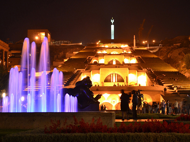 Прогуляемся по вечернему Еревану, который своеобразно красив, особенно когда зажигается подсветка зданий и столица превращается в ночную сказку. Вы прочувствуете атмосферу розового города, пройдетесь по интересным улочкам, увидите шоу фонтанов, танцующих под ритм музыки, посидите в уютных кафе.