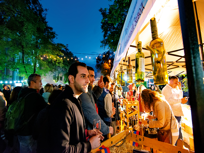Ереванские винные дни – один из самых популярных ежегодных фестивалей среди туристов и жителей города. У Вас появится возможность не только попробовать традиционную алкогольную продукцию и блюда от лучших столичных ресторанов, но и послушать разнообразную музыку и побывать на танцевальном концерте.