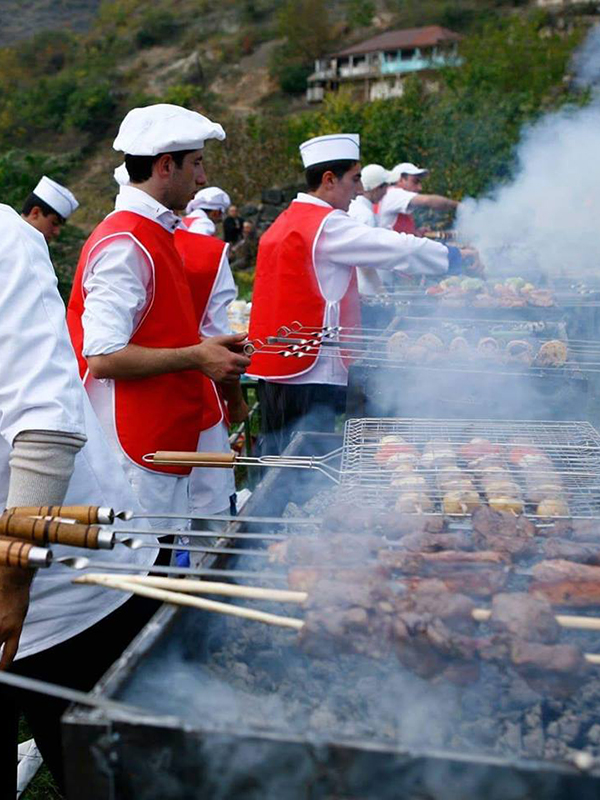 Отведать настоящий армянский шашлык из курицы, свинины, ягненка или говядины можно на популярном фестивале. Здесь туристы познакомятся с традицией заворачивать горячее мясо в лаваш, от чего оно становится более ароматным. Любители вегетарианской кухни смогут попробовать запеченный на мангале овощи: картофель, помидоры, баклажаны, сладкий и острый перцы.