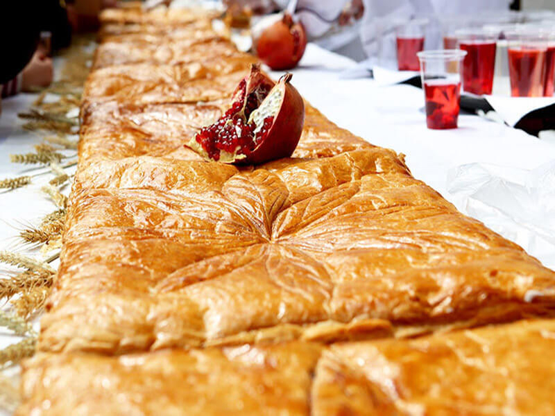 Гата – традиционная армянская выпечка, внутрь которой кладется хориз (смесь муки, сахар и масла). Это одно из самых известных блюд национальной кухни, которое обязательно должен попробовать каждый турист. На фестивале представлены самые разные варианты гаты, один из которых точно покорит Ваше сердце.