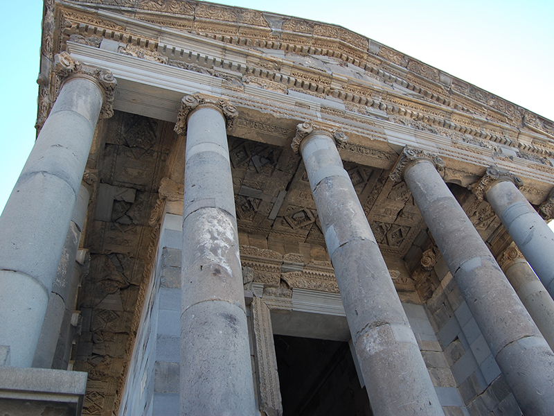 Посвященное богу Солнца Митре строение – один из известных памятников эпохи язычества и эллинизма в Армении, о чем свидетельствуют надписи на греческом языке, обнаруженные на мозаиках храма. Гарни сложен из блоков гладкотесанного базальта, снаружи строение окружено колоннами, а искусная резьба по базальту свидетельствует о мастерстве армянских зодчих.