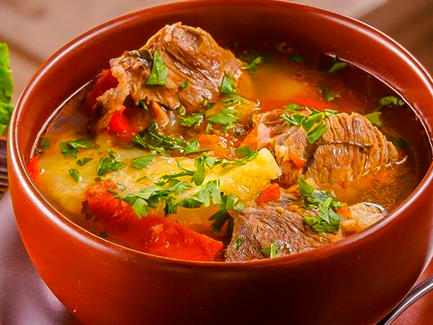 Khashlama – a soup made from lamb meat and potatoes. The soup has a wonderful taste.